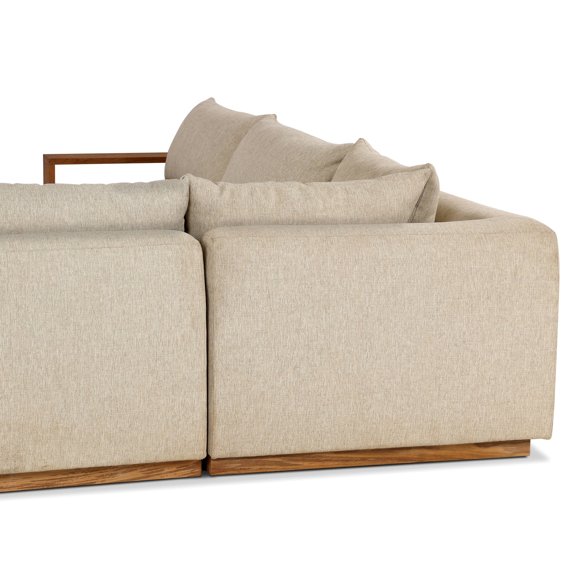 Grand scale sophistication. This wide format outdoor sectional features heavy teak framing and upholstery with an inviting sit. Cover or store indoors during inclement weather and when not in use.
