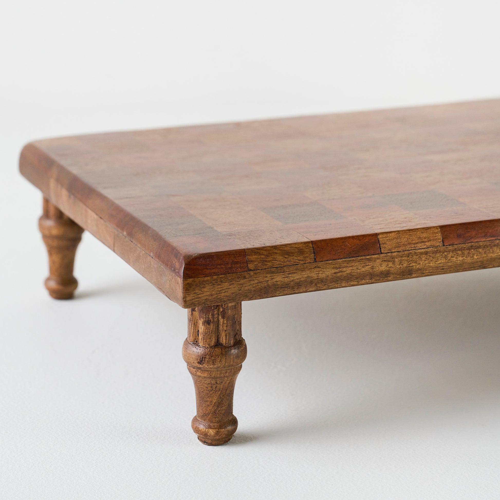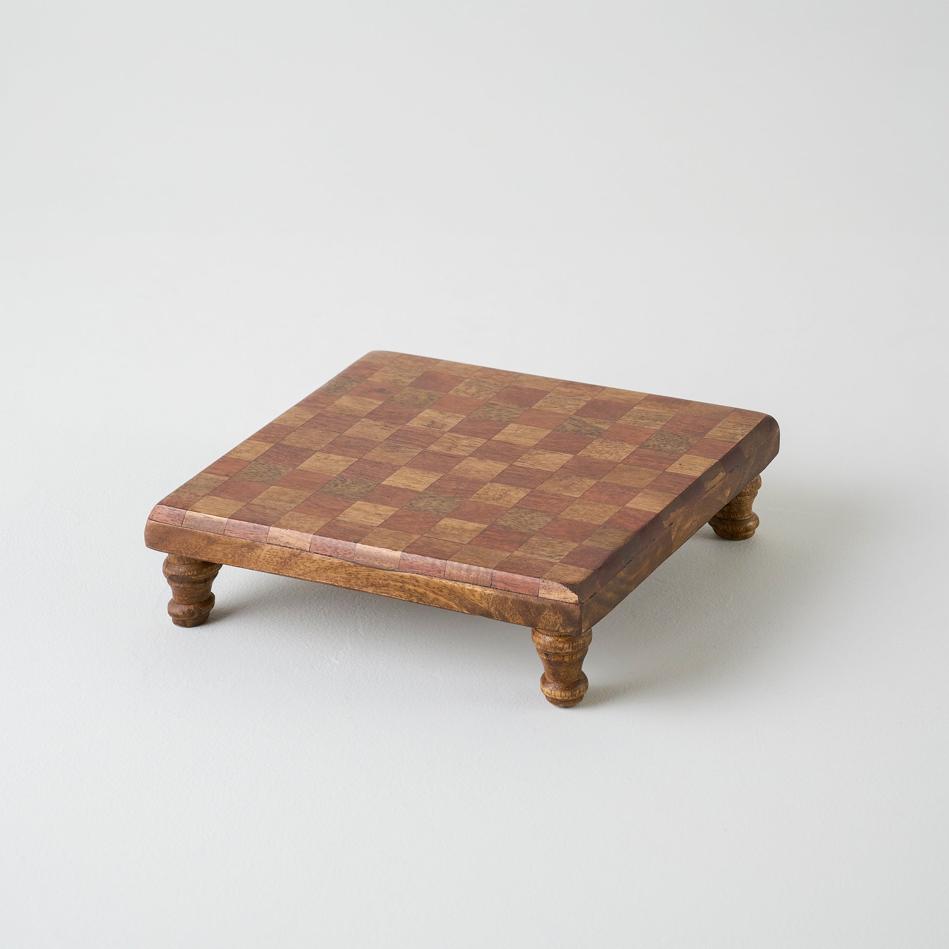 Take any tablescape up a notch with this wooden riser. Featuring a tone-on-tone checkered pattern, this classic piece is ideal for serving something to savor. It also functions as a moment to elevate favorite decor pieces, like a flickering candle or fresh-cut flowers.