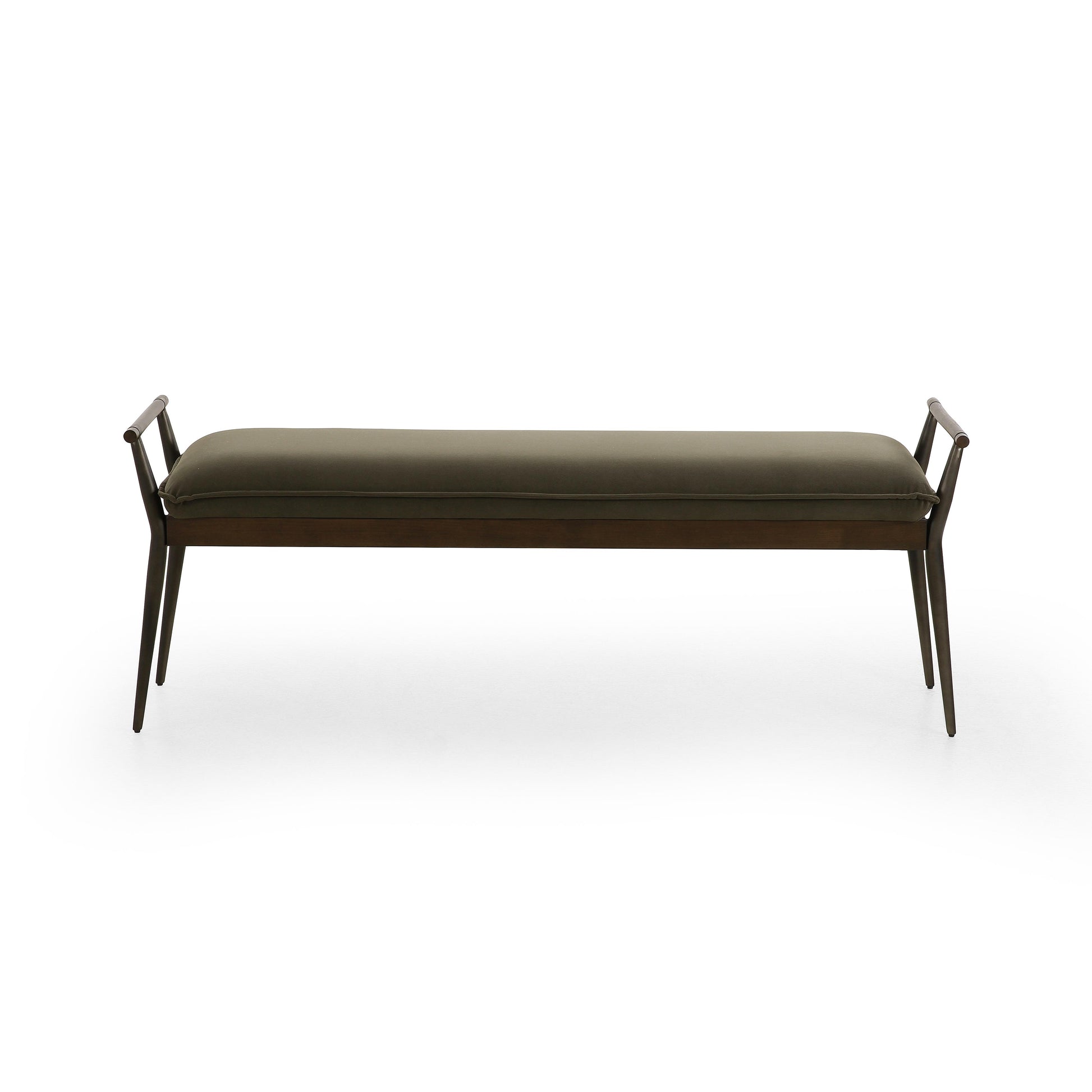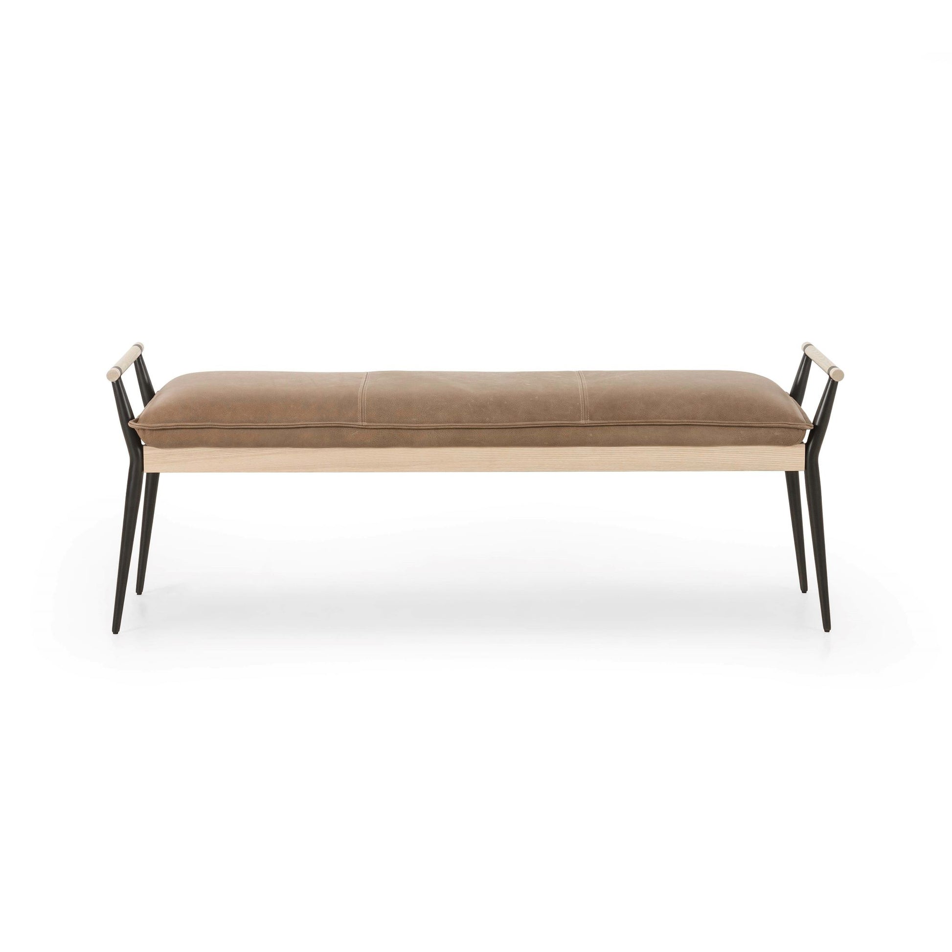 Mixed materials make the Danielle Bench a versatile piece for any space or style. Black-finished steel legs contrast with a solid whitewashed ash base, while a soft, textural cushion creates an inviting place to sit. Well-suited for an entryway, living area, or even at the foot of a bed.