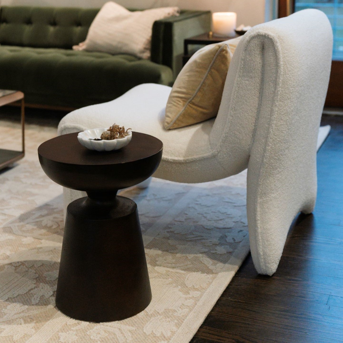 Make a sculptural statement with the Lex End Table. Its dramatic form pairs with an antique rust finish to add warmth and dimension to any space.