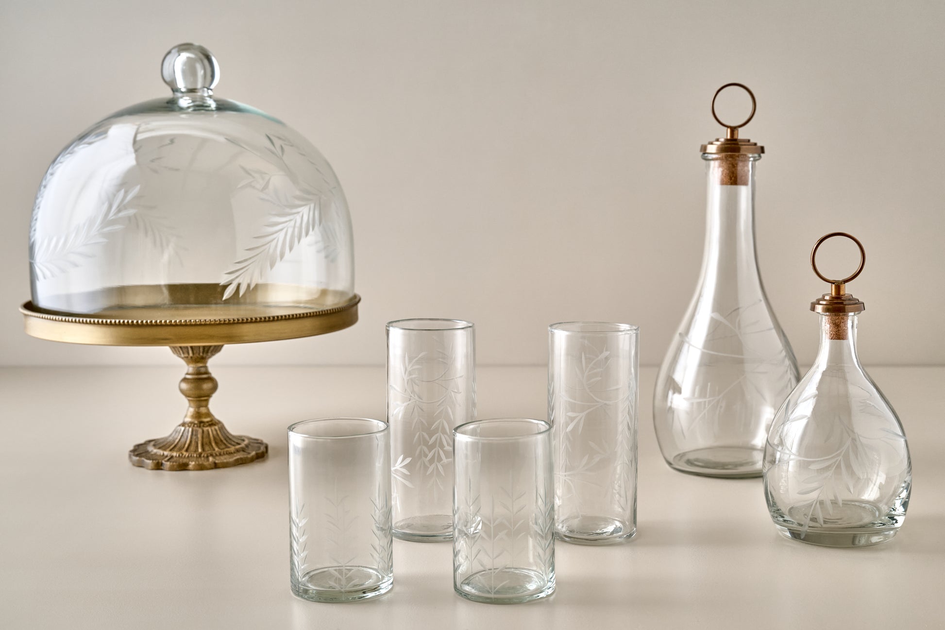 Marlowe Etched Glass + Brass Cake Stand