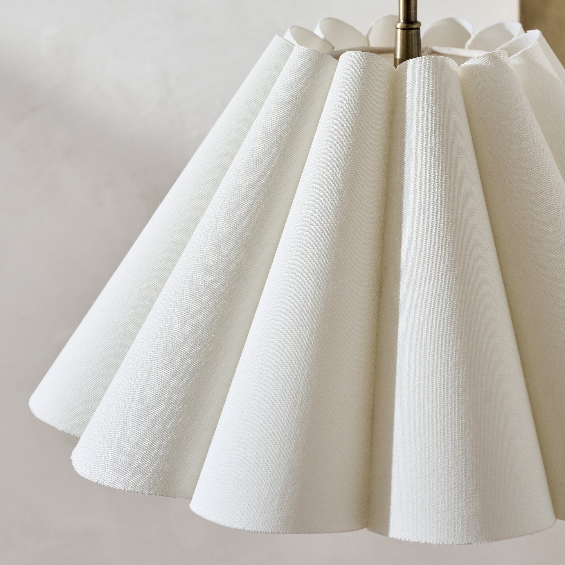 Odette Swivel Plug-In Sconce with White Linen Scallop Shade