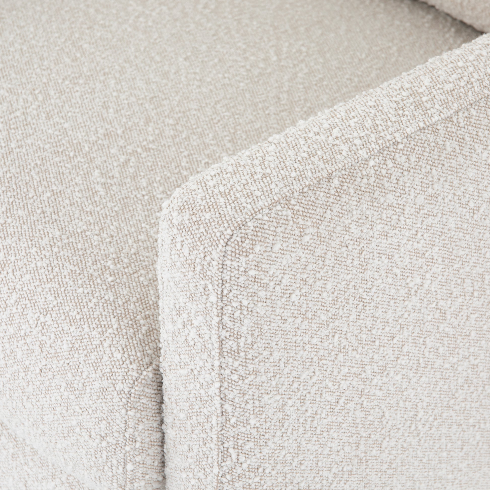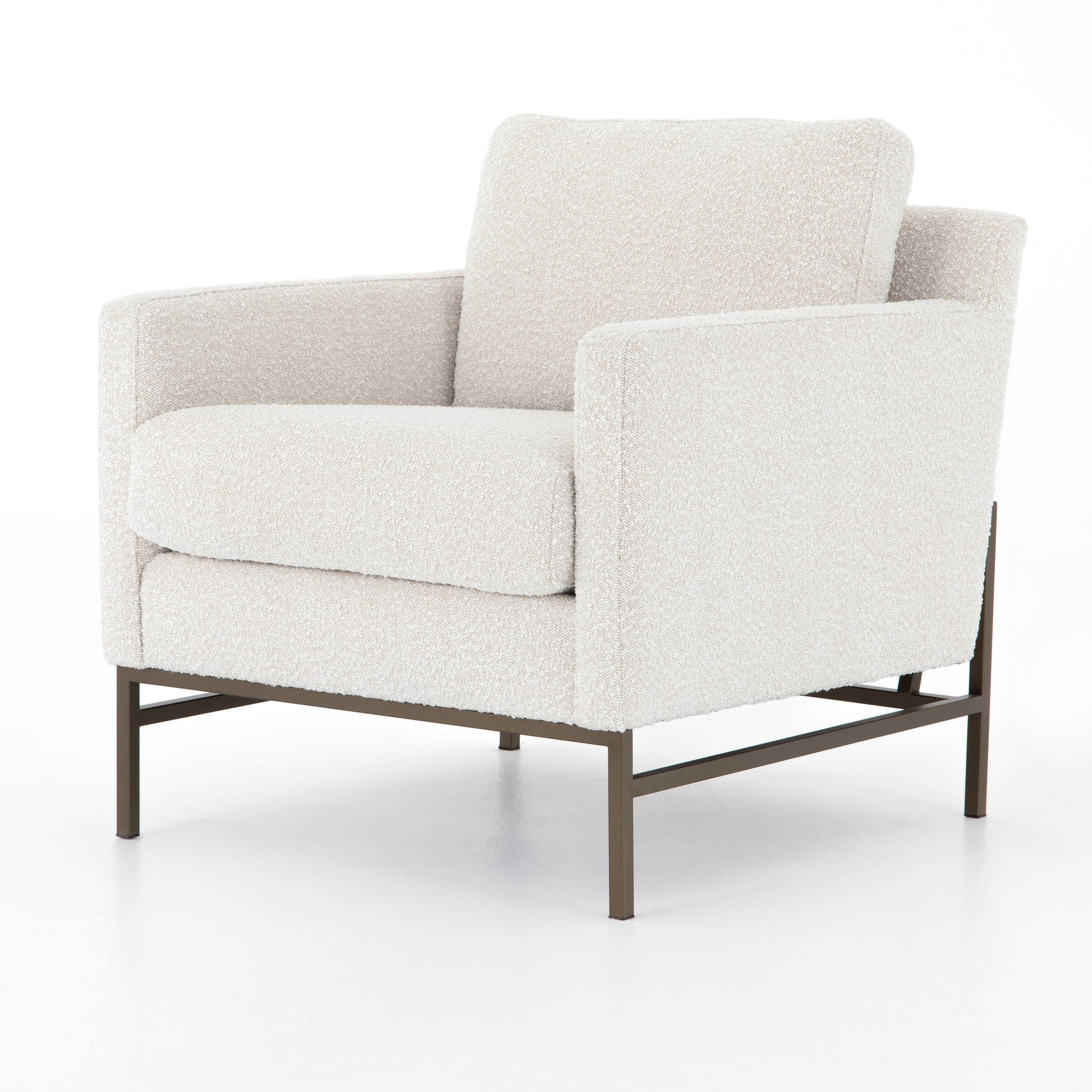 Plush and modern-minded, the Thea Chair combines the clean, angular lines of track arms and an airy, bronze-finished iron base with a thick, boucle-like upholstery and comfy cushioning, for the best of both worlds.