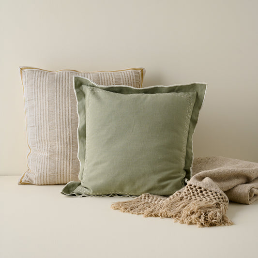 Dusty Green Flora Block Print Quilt + Sham Set (Queen)
